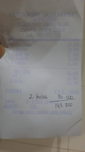 ย ย ย Read morenama sederhana penyajian tidak. lauk tidak boleh disatukan dengan nasi. lauk harus disajikan di piring kecil. dan potongan lauk menjebak satu piring isi lauk 2. gaya kompeni. ketika bayar kita bilang satu mereka bilang 2. makanan trllu garing untuk rendang nya. ga empuk. ga enak. penjaga kasir nya ibu ibu merhatiin meja org yg sedang makan. suasana kaku. pesen saya infokan dari awal setiap piring kecil ada lauk brp biji. atau kita tanya dulu sebelum dimakan. dan bagi pelayan juga maksa ketika harus disajikan di piring kecil. disini tidak berlaku pelanggan adalah raja. saya jg perhatiin org yg lagi bayar ditanya sama kasir nya makan brp banyak dia bilang satu ga percaya dan kasir bilang biasanya di piring ada dua!...