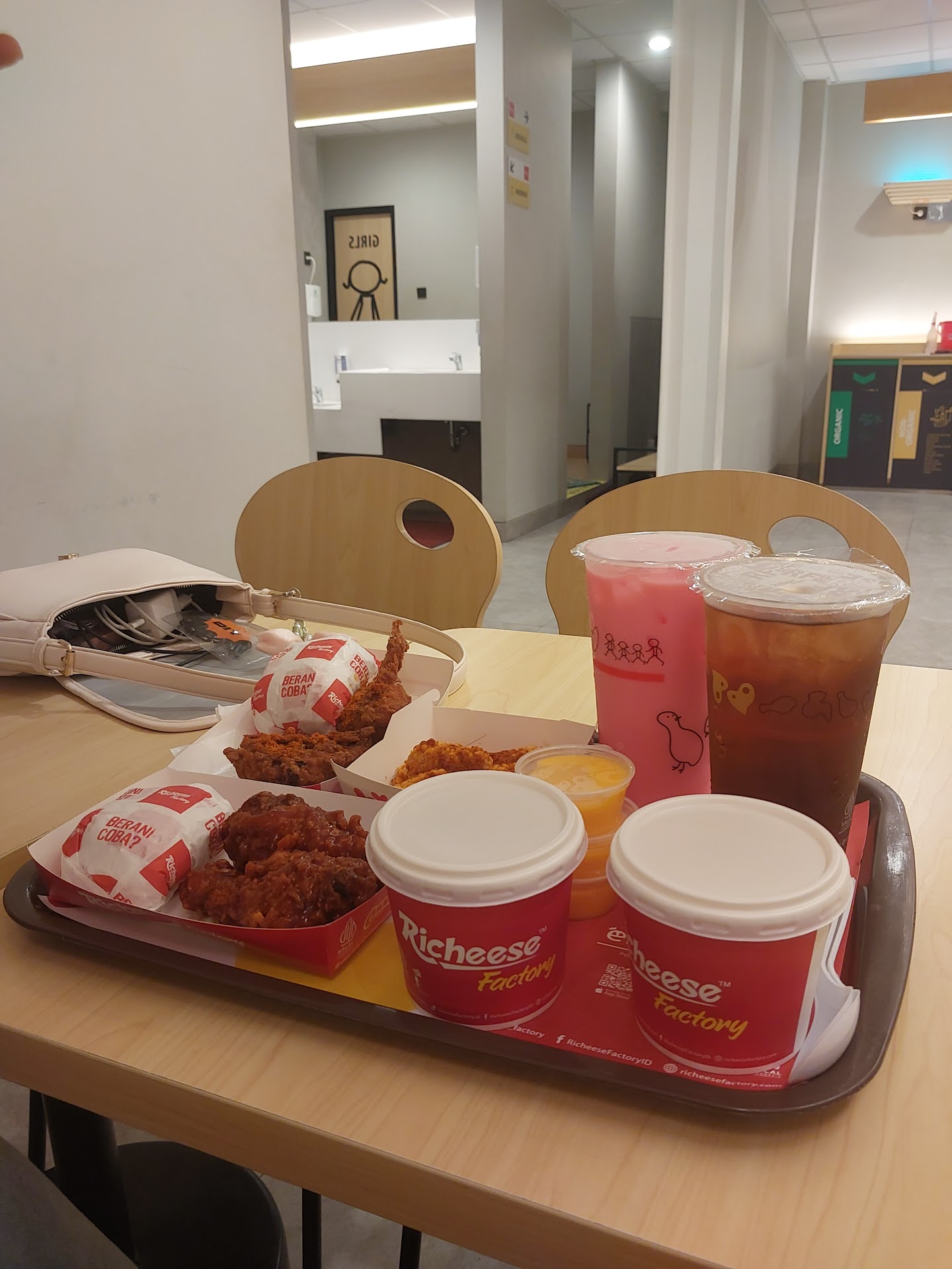 Read morerecently visit the richeese outlet. kesan pertama seperti biasa kaya kurang SDM karena banyak sekali yg abis makan ga di beresin which is seharusnya yg beresin adalah org yg makan.. tapiii tong sampah gede di richeese itu di taro di ujung deket wastafel jd ga smua org mau bawa2 nampan ksana.
