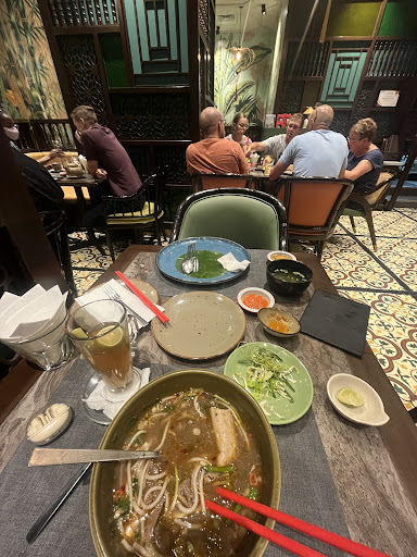 We ordered fried banana as appetiser and meals for two (Pho and Pho Cuon) with pandan ginger + saigon summer for the beverages. The appetiser was quite OK. Then the pho came first after we wait for quite a time, followed by Pho Cuon around 20 mins later (I finished eating my Pho :p). Btw when my Pho came, I waited for 5 mins without any spoon/fork/chopsticks. Then I decided to asked for dining utensils for me to eat yet they didn't give us any napkin so we decided to use our own.