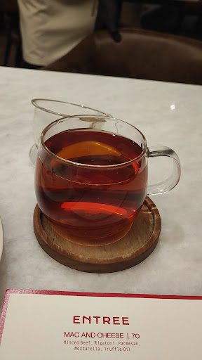Food Review: ⢠Short Ribs Croquette: Crispy on the outside and tender on the inside, these croquettes offer a delightful blend of flavors. The rich taste of the short ribs is complemented by a perfectly seasoned crust. A must-try appetizer! đ ⢠Shrimp Scampi: Succulent shrimp cooked to perfection, tossed in a garlic butter sauce with a hint of lemon. The dish is both light and flavorful, making it a refreshing choice. đ¤ ⢠Pan-Seared Salmon: The salmon is seared to achieve a crispy skin while maintaining a moist and flaky interior. Paired with seasonal vegetables, this dish is both healthy and satisfying. đ ⢠Coffee-Rubbed Scotch Fillet (500g) with Hand-Cut Fries & Creamy Mushroom Sauce: A generous portion of scotch fillet, the coffee rub adds a unique depth of flavor, enhancing the meatâs natural richness. The hand-cut fries are crispy, and the creamy mushroom sauce complements the dish perfectly. đĽŠđđ ⢠Mocktail - Summer Soiree: A refreshing blend of tropical fruits, this mocktail is both vibrant and invigorating. Itâs the perfect palate cleanser between courses. đš ⢠Dessert - Tiramisu: A classic Italian dessert executed flawlessly. The layers of coffee-soaked ladyfingers and mascarpone cream are balanced beautifully, providing a sweet ending to the meal. đ°â