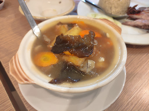 Sapo tahu jamur, jamurnya tebel-tebel (kayanya dia pake jamur merang, soalnya gede potongannya, tebel dan item kulitnya). Jadi jamurnya ada jamur yang tebel-tebel tadi, sama jamur kuping, jamur kupingnya cuma 1 atau 2 gitu, selebihnya sayuran sama tahu yang gede-gede, tapi karena gue kebiasaan makan sapo tahu yang tahu nya lembut bulet-bulet, makan di sini jadi kaya semur tahu potongannya, gede-gede agak mengkel gitu. TAHU LOH YA TAHU ! (aku benci pikiranku). Nilai nya berapa ? Karena ngga sesuai ekspektasi, berapapun nilai nya ngga ngaruh ya karena gue bukan siapa-siapa, untuk harga segini dengan porsi segini... ya kurang. Kecuali enak banget. Jadi nilai nya 6/10.