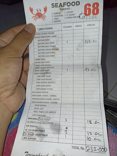 Overall : mencoba karna penasaran tempat baru, tapi tidak ada keinginan coba kembali, karna rasa masih kurang tajem, Harga sedikit tinggi 192rb dan belum sebanding dengan rasa untuk ukuran seafood tenda, kebersihan topcer, kecepatan servis mantuul