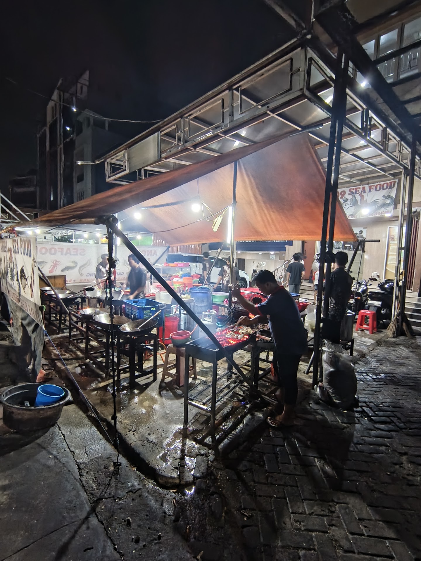 Read moreDari luar kelihatannya cuma warung seafood tenda biasa di pinggir jalan, tapi ternyata unik banget. Tendanya itu ternyata dapur, sementara tempat makannya ada di ruko besar di belakang—dua lantai, luas, terang, dan full AC. Adem banget dan nyaman buat makan lama-lama, padahal dari luar gak nyangka.