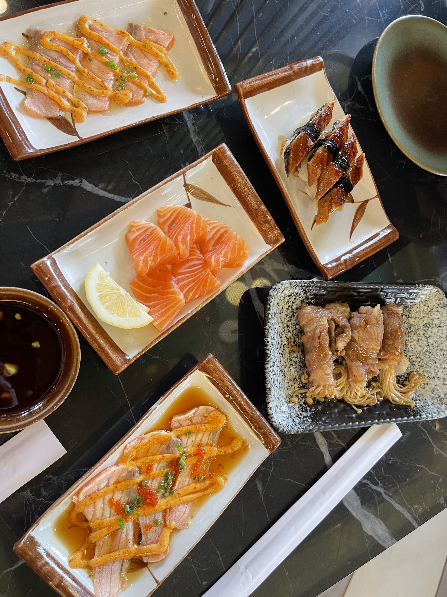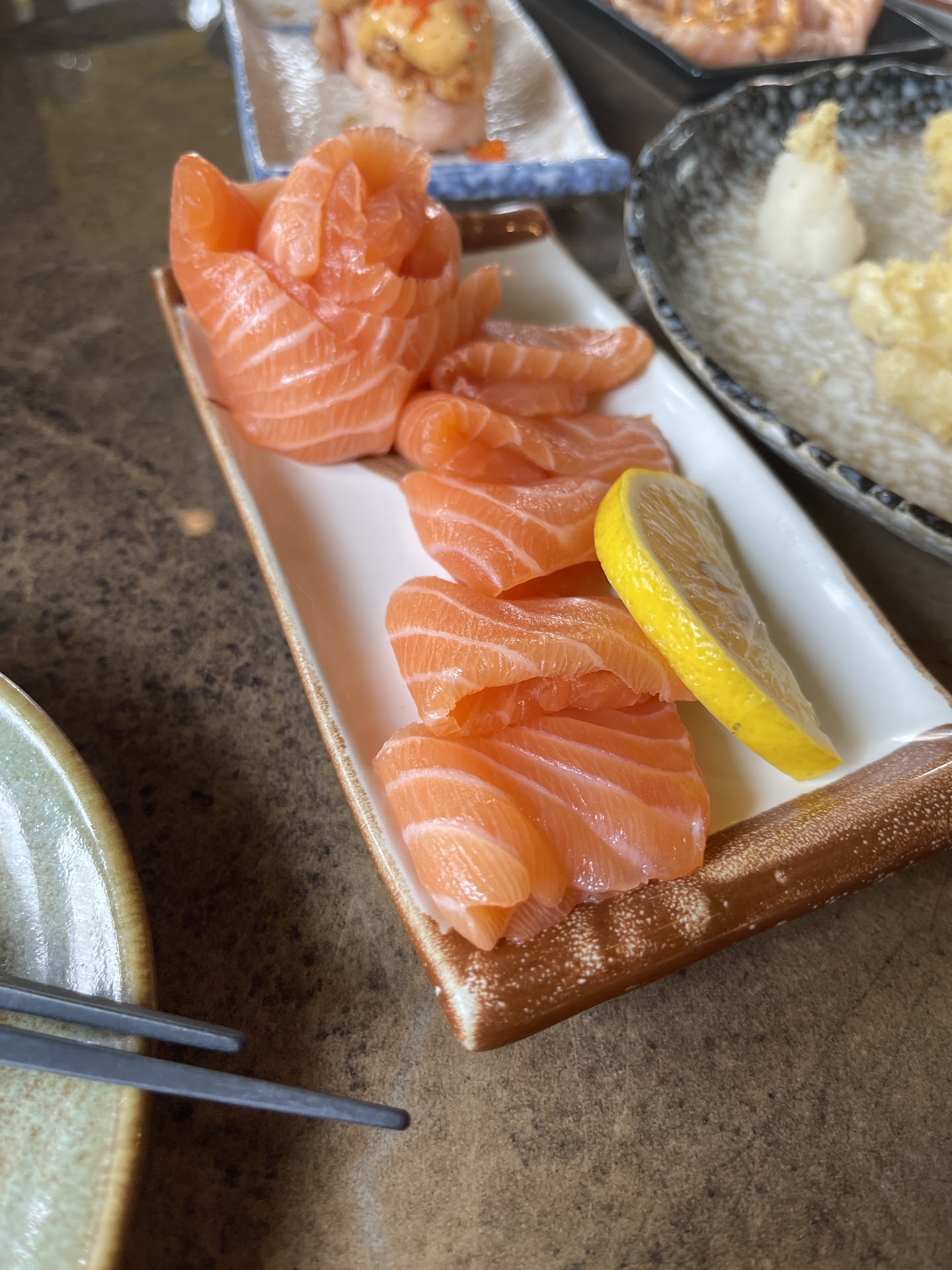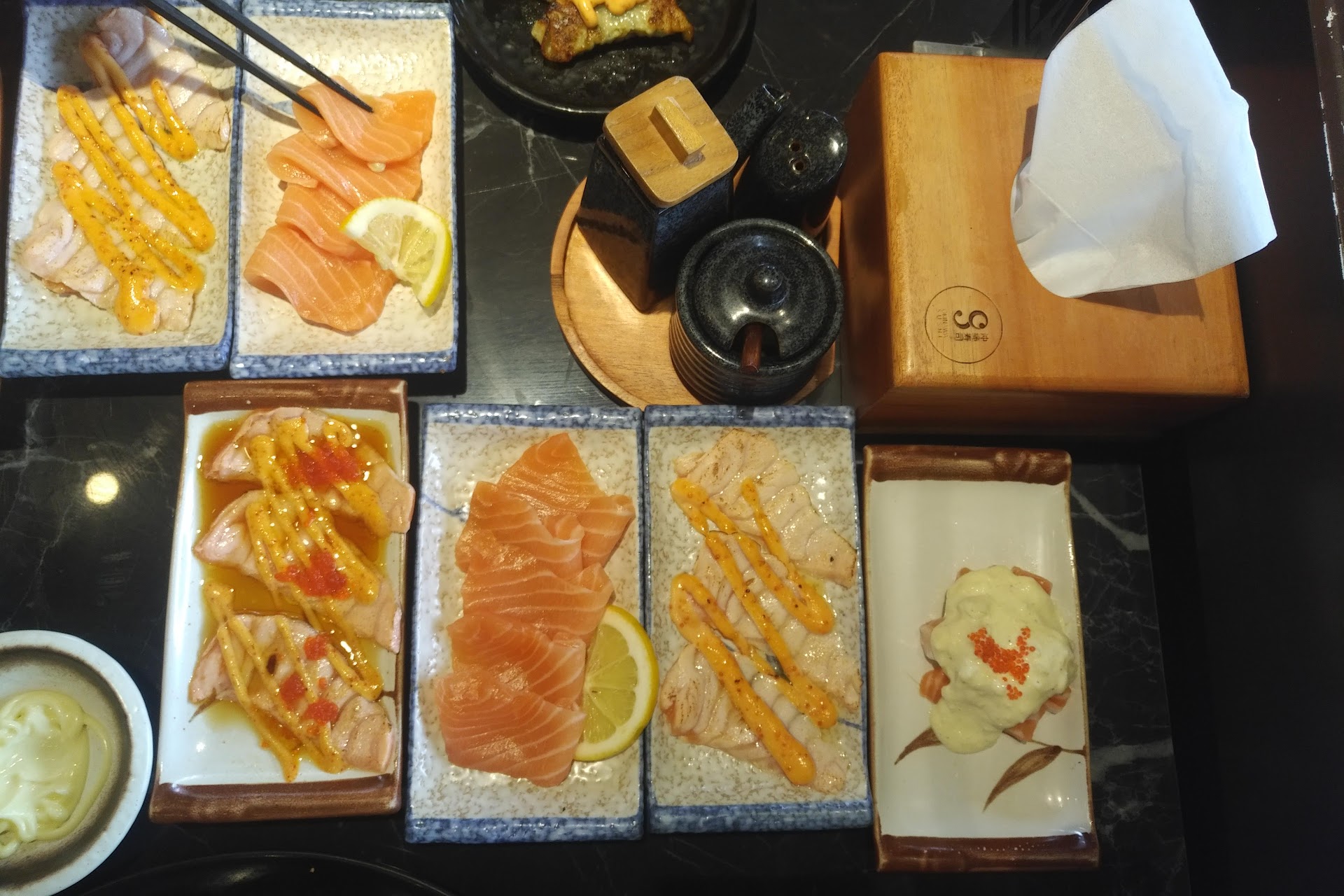 I wish there’s more sashimi variety than just salmon, but the salmon sashimi varieties are quite good. I love the carpacio and the aburi truffle.