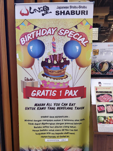 Read moreSHABURI is a Japanese Shabu Restaurant, this restaurant is perfect for lunch/ dinner, especially during the rainy season with family or friends. I highly recommend this restaurant because the soup is good for growing-up children, pregnant women, and recovery patients. Because the choice of shabu sauce is varied, there are 5 choices of Dashi Soup: super calcium namely Konbu, Sukiyaki, there is Paitan Chicken Collagen, Hot Miso and Japanese Herbal. There are various kinds of vegetables, seafood, mushrooms, desserts, cold and hot drinks. Every time Shabu-Shabu in Shaburi I always choose ginseng, lettuce, spinach, various mushrooms, dori fish and beef slices, the drink, I choose cold ocha and peach manggo without ice, because it is cold. Great service, tasty meat is also still fresh and reasonably priced for all, a great place to eat as much as you like. Shaburi also has special promotions such as free ones for birthdays...