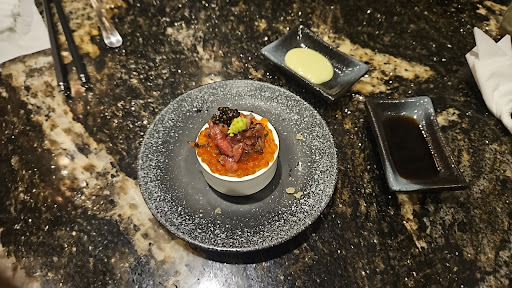 After a couple of appetizers to whet the appetite, the restaurant seamlessly transitions into the main courses—each a tribute to meat in its finest form. Shinkai goes beyond the traditional grilling commonly associated with yakiniku, venturing into various culinary techniques such as tempura-frying, hand-rolled sushi, and chirashi bowls. This diverse preparation maintains the element of surprise while you savor different facets of the rich A5-grade meat.