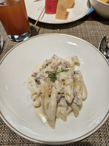1 friendly female waitress came over to my table n offered me penne carbonara (nice n hot. This is the only one i finally can enjoy) so I came back n ordered at pasta corner. Male cook there too busy with his stuff didn"t even pay attention to us waiting for him. Anyway I ordered vongole (it was plain n spaghetti noodle was cut man!), penne carbonara (thanks for bringing to my table but I know u already prepared in advance in a large portion cus i saw it so basically u served me the cold one)