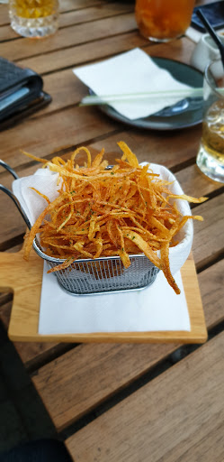 Interesting menu list. We tried the nutella crepes, very good. Seafood cakwe, pempek, fried mushroom, all recommended items. Skinny fries is too thin. Made me think of sambal teri kacang and a bit too salty. I ordered the iced coconut water with dates: so-so. Gingy Kale: a bit too sweet.