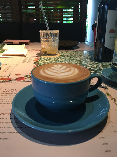 Our order was these: a chicken liver parfait as an appetiser, two main courses: one beef steak, and a barramundi dish with local flavoured rice. The drinks was a strawberry freeze, a passion fruit drink, tumeric latte, and two hot coffees: americano and a mocha. They uses DJournal Coffee brand. The bill totalled to about IDR1,100,000.