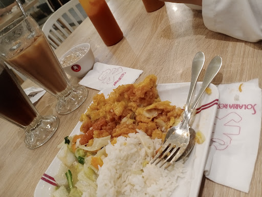 I was holding my glass of taro milkshake as I moved to a different table when the glass slipped from my hand and broke. Shocked and embarrassed, I apologized to the staff and quickly approached the counter at the front of the restaurant. I explained to one of the cashiers that I would pay for the glass and apologized profusely. Without a hint of anger or blame in her expression or voice, she said I didn't have to pay for it. After thanking her and apologizing some more, I sat at the table I intended to move to. A few minutes later, to my complete surprise, a staff member approached my table with a full glass of taro milkshake. I nearly cried from the kindness I was shown by their staff. Not only did they not make me pay for the glass I broke but they even replaced my drink. Hats off to the wonderful staff at Solaria Central Park Mall. I will never forget the kindness and outstanding customer service you have shown me. Their nasi goreng was topnotch, by the way. It was freshly cooked, the serving was very generous and the flavor was delightful. I definitely recommend this place and I will certainly come back the next time...