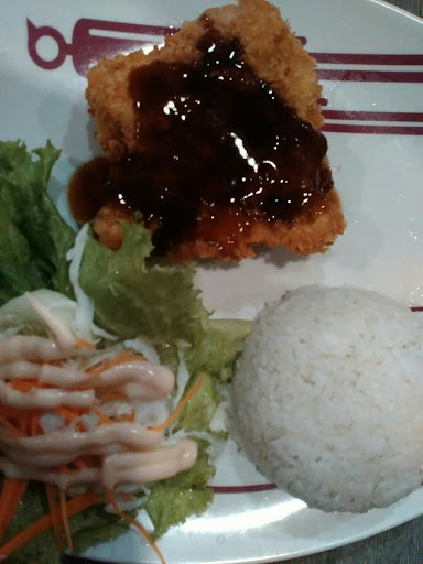 Saya pesan chicken mozarella.. saat makanan sampai dari luar terlihat ga jauh berbeda dengan pesanan teman saya yaitu chicken katsu. Bedanya kl chicken mozarella ada mayo di atas teriyaki saucenya. begitu di potong bagian tengahmya expektasi akan menjumpai keju melted yg melimpah ruah tp sayangnya tidak. Kejunya secuil banget. Ayamnya fine sih tapi cenderung kering.