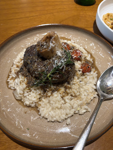The menu mentioned that the Osso Bucco came with Risotto Alla Milanese. Whenever I ordered such menu (in Italy) the risotto came as a yellow colored risotto due to its saffron content. Maybe I’m wrong? Maybe it’s the contemporary version…