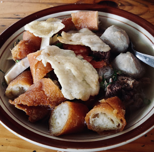 One portion is quite large, containing vermicelli, yellow noodles, pieces of meat, tofu, sliced cabbage, tomatoes, chips, risol, and a delicious clear sauce. You can also ask for the risole to be separated so that it is...
