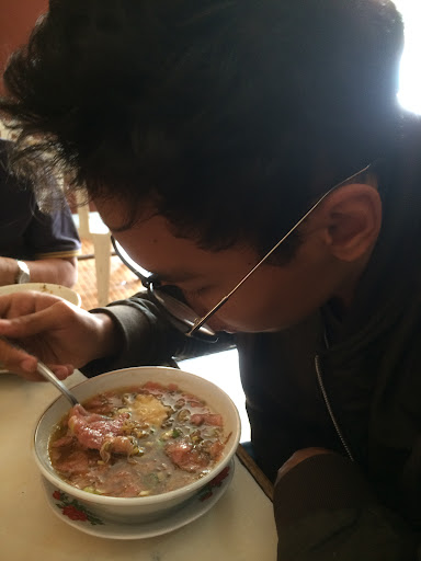 The place is hot and humid. Not a comfortable place to eat, but the food is excellent. I recommend the chicken sroto with the works (ati ampela) but they are usually gone before lunch time is usually over. The broth is flavorful and the chicken skin adds a delightful crunch to the smooth broth. Pour some of that spicy peanut sauce on your spoon of sroto and slurp away. I donāt recommend pouring the sauce in the sroto because youāll change the whole experience without being able to go back to the original broth. The mendoan is a must, itās huge, one is enough to share for 2. I donāt recommend the chicken and beef sroto, the combination just doesnāt work for me. As they say, you can have it both ways. So choose chicken or beef. The tea is also delightful. Itās rich without being overly bitter. Get the hot unsweetened tea or sweet ice...