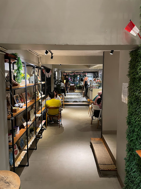 Desain kafe ini tampak kasual. Ragam ornamen ruang mulai dari pigura foto, quote boards, mural dan masih banyak jenis lainnya menyemarakan suasana. Namun saking banyaknya jadi terkesan sempit. Hal itu juga disebabkan oleh atap ruang yang rendah. Untuk pilihan menu cukup lengkap mulai dari starter, maincourse hingga dessert. Ragam minumannya pun semarak, ada yang hangat maupun dingin.