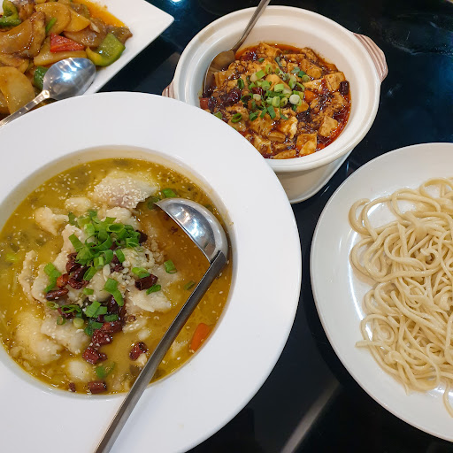 Sup Ikan Asam Pedas (Suan Cai Yu - 228k) Sate Daging Kambing (Yang Rou Chuan - 18.8k/stick) Sayur Tiga Serangkai (Disanxian - 118k) Mapo Tofu (98k)