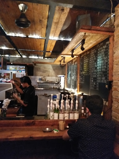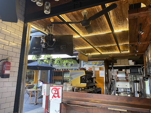 Relaxed coffee bar with a rustic-chic feel & outdoor seating dispensing premium caffeinated brews.