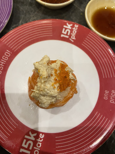 Read moreharga per piring 15.000, overall sushi nya ok. Cobain carpacio juga enak, minyak wijen nya kecium banget, karna gasuka pedas saya minta ganti dengan Mayo biasa, tapi kebanyakan sebenarnya Mayo nya jadi waktu makan saya pinggirkan.