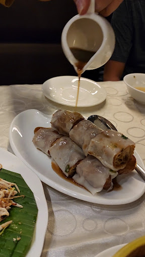 Read moreMerayakan Malam Imlek pergantian dari tahun macan menuju tahun kelinci berkumpul bersama keluarga besar kami di Grand Duck King Plaza Setiabudi ini. Hidangan pertama Bountiful Salmon Fish Yu-Sheng isiannya campuran berbagai sayuran parut, keripik pangsit, daging salmon asap disiram saos lemon dan minyak wijen lalu diacak-acak diangkat setinggi tingginya sesuai filosofi menu Yu-Sheng ini. Hidangan kedua adalah bintangnya Braised Shark's Fin Soup with Crab Meat/Sup Sirip Hiu dengan daging Kepiting dihidangkan dalam mangkok personal untuk setiap orang. Hidangan ketiga Braised Top Shell and Deep-fried Fish Stomach with Oyster Sauce/Angsio Daging Kerang dan Gelembus Ikan dengan Saus Tiram, Juara rasanya. Hidangan keempat The House Special Roasted Duck/ Bebek Panggang Spesial, tersaji tanpa tulang kalau yang ini mah bukan kaleng kaleng Terbaik dari yang lain. Bebeknya super empuk, kulitnya krispi dicocol Saos Hoisin meleleh dalam mulut Sis... Hidangan kelima Tiger Garoupa in Two Varieties (Sweet Sour / Salted and Pepper) Kerapu Macan Dua Rasa (Asam Manis dan Cabe Garam) Potongan ikan kerapu macannya besar besar, mantul benar. Hidangan keenam Fried Rice with Dried Shrimp, Minced Chicken and Mushrooms/ Nasi Goreng dengan Udang Ebi, Daging Ayam dan Jamur Hitam juga enak rasanya. Hidangan penutup Kue keranjang digoreng tepung, kalau yang ini sih saya sering buat sendiri di rumah Broo 😀. Pelayanan waitress kurang, perlu diperhatikan dan ditingkatkan lagi. Ada yang lucu ketika menyiapkan menu Yu-Sheng waitress tak bisa melafalkan dengan baik Kata Kata Mutiara Kebaikan dari menu Yu-Sheng ini, sehingga mau tak mau dia mengeluarkan catatannya karena lupa. Secara keseluruhan semua hidangan rasanya enak, tampilan presentasi di atas piring juga cukup rapi dan cantik tidak berantakan. Bagi teman teman yang ingin merayakan hari bahagia bisa booking meja di Grand Duck King Plaza...