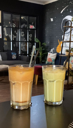 Top notch buat tempatnya, mulai masuk kerasa homey cozy, jumlah sofa juga banyak, cocok buat kaum jompo butuh sofa empuk dan nyaman. Dari lighting sampe semua printilan design interiornya oke. Ada outdoor indoor juga buat perokok dan vape user. Tiap table juga ada colokan. Tersedia prayer room juga cuma tadi blm liat dalemnya kayak apa. Oya point plus juga playlistnya anak 2000an awal bikin betah hahahahah.