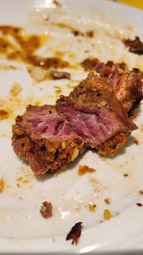 The breakdown: THE MEAT Portuguese Peri Peri Top Sirloin Score: 1/5 It's chewy because it's rare, not medium rare, but rare. The outside looks good, but once I cut it open, it's still look very much alive. The Peri Peri itself tastes so so, not the OG Peri Peri.