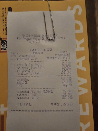 When I politely asked the staff named Angel if we could be moved, she responded with a cold and arrogant tone: “Penuh pak, mau di smoking room gak?” If you were there, you’d understand — it wasn’t just the words, it was the dismissive attitude. For a restaurant like UNION, that kind of service is unacceptable.