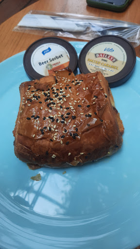 I chose their Bailey's Salted Caramel and a Smoke Beef and Cheese Croissant for breakfast.