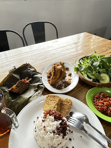 I ordered: nasi tutug oncom, pepes jamur, sambal dadak, fried chicken, fried tofu, fried tempeh. Overall the food have a good balance and complimented each other, the fried chicken was a surprise to me since it's tender, juicy, and full of herbs and spices yet still well balanced. But, the pepes jamur abit different with what I expected since my expectation was there will be tofu and mushroom inside it, in fact there's only mushroom. Additionally, every purchase complimented with free lalap (as like typical local Indonesian restaurant). I would gladly give 4,5/5 for the food!