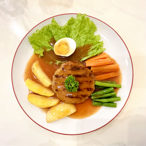 Bistik Tahu Ayam IDR 42.900 Salah satu menu spesial dari Warung Tahu. Ada yang sudah pernah cobain belum nih? Jadi gini, olahan tahu yang digiling bersama denga ayam dan dibentuk menjadi steak. Satu piring sudah berisi bistik, kentang, wortel, dan buncis. Olahan bistik ini lembut loh dengan tekstur yang menyerupai tahu, namun memiliki rasa dan aroma daging ayam. Disiram juga dengan tomato sauce yang sedikit asam. Beneran deh ini makanan home-made dengan rasa plain namun sehat.