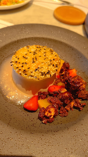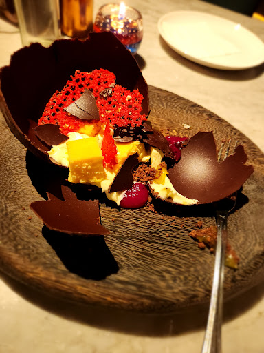 Great food, great ambience, and exceptional service. I went here with two other people ordering a couple of things. It started with some complimentary welcome drinks. They gave us orange juice as welcome drinks which is very nice of them. I was actually surprised that they serve welcome drinks even though this isn't a hotel but a restaurant. So nice little service done right there. I started with the churros starter that I shared with my friends since the portion size was big, The texture and rigidness of the churros was nice with cinnamon sprinkled all over the churros. They served us two choices of sauce, chocolate sauce, and another sauce which I sadly forgot. I think it's better to eat the churros without the sauce as they are already sweet with cinnamon sprinkled all over. So I had the king prawn aglio olio as my main course and it was superb though quite spicy. The prawn was very juicy and not watery. The pasta itself also had a very nice texture. When the aglio olio came it was a tad bit too spicy for me. So I asked some random waiter if I could maybe order another item. I already ordered another plate but then my waiter came up to me saying that the chef will be doing his best to try to "adjust" the spiciness by "modifying it". But instead of getting the same plate, they gave us a whole new aglio olio with the same amount that you would get it you ordered a new one. That is what I call exceptional service. That was actually one of the things that made me enjoy this restaurant even more. For desert, me and my friends ordered "The Dragon's Nest". It was a very unique experience. So it looked somewhat of a coconut shell but then if you hit it with your spoon, it will crack exactly like how an egg would crack which is fascinating of the way they can replicate the way that an egg cracks open. This desert has a meringue dipped in liquid nitrogen on the side. Very cool desert. Though keep in mind you'll need to have 2-3 people eat this as this is a large portion desert. My friends ordered the rosemary chicken and the truffle ramen. They said that everything was good from the starters til' the desert. I think so to. The ambience was also great with dimmed lights at night. A very vibey place I would say. The place is loud and perfect if you"re going here with a group or to just enjoy a booze. Give this place a try and you won't be dissapointed.
