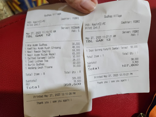 THE WORST PART : DISAPPOINTED WITH THE FOOD. Salah satu pesanan saya Nasi Rawon Daging dengan harga IDR 68,000 before PB, dimana dagingnya alot KERAS, sama sekali tidak dapat dikunyah.. kemudian info ke salah waiter dan dibawa ke dapur, tapi waiter tidak kembali tanpa RESPON APA2 sampai kita selesai makan dan bayar. Kemudian pada saya selesai melakukan pembayaran, saya feedback lagi bahwa tadi saya info rawon dagingnya keras tapi kok ga ada respon apa2, si Mas dan Mba Kasir kemudian telepon menanyakan kenapa customer complaint tidak ditanggapi, mereka hanya menjawab IYA BILANG AKAN DIPERBAIKI KE DEPANNYA. OKAY WELL KATANYA GUDHAS VILLAGE INI THE FANCIEST RESTAURANT IN TOWN, BUT THIS IS NOT WORTH WITH THE PRICE WE PAID. So sorry to say, i can say this restaurant quite expensive for local range pricing but this is not even A SERVICE YOU'LL EXPECTED.