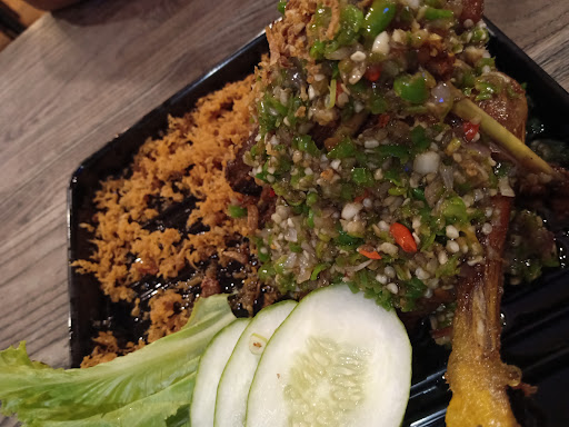 Delicious food the place quite comfort but after u eat the spicy menu i think this place need more electric fan or air contitioner so the place will be cool, the price i think quite affordable, staff hospitality needs to be improved. Parking not free. Far from the center of city. No debit payment available. For some food its sometimes contain too many...