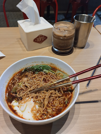 ย ย ย Read moreRasa mie signature nya enak ya, chili oilnya juga pedasnya mantab, pas. Rasa mie kuah mala kurang enak menurut sy karena pedasnya terlalu over, jd tidak ada yg bisa dinikmati selain rasa pedasnya. Untuk perdimsuman enak ya, hanya saja itu di buku menu isinya 5 yg dateng isinya 3, kalo memang isinya 3 mending ya gambarnya tampilin 3. Untuk makanan harganya cukup terjangkau, untuk minuman overprice sih dengan rasa dan porsi segitu. Tempat cukup bersih dan banyak kursinya. tlg sediakan sabun di wastafel...