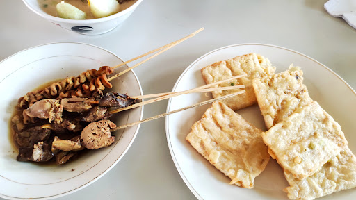 Makanan ini tuh berkuah, semacam kuah nya soto betawi atau sop kaki kambing. Isian nya daging bisa pilih tetelan / potong an ayam, Sapi, jerohan Sapi, atau balungan kambing. Tapi ada lontong juga di mangkuk yang sama. Bisa pesan kuah segar (ga pedas) atau kuah kemlecer (pedas tapi ga parah). Overall kuah berasa lebih ke manis. Daging Sapi nya empuk banget wehhh, sedap! Ditawari sate dan tempe, kalau ambil ya bayar.