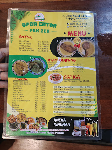 Baru pertama kali, tapi udah suka banget sama opor entoknya, teksture dagingnya empuk, terus rasanya merasa banget gimana yah ngomongnyaaaa. Terus ada nih rica entok itu juga pedes, asinnya pas, ini gimana sih enak semua😭 Ada kenci juga, mesti kalian mikrinya ada lalapan kan? iya ada, tapi isinya kenci dan timun, terus ada juga kenci kress yaampun rasanya enak juga, apalagi sambel bissa ambil sepuasnya, nasi dan lalapan juga auto kenyang kalau kesini, oiya lokasi ada di daerah kejajar Dieng, bisalah mampir ke sini habis dari Dieng yah Area parkir luas, ada mushola, toilet dan...