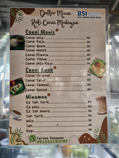 Roti Canai... Ya seringkali kita menyebutnya roti Maryam, ... Di sini rotinya lebih tipis dan lembut. Banyak varian yang bisa kita rasakan, secara garis besar dibagi Manis / Gurih. Saya mencoba : Canai Tissue (cukup tipis tapi diperlebar bentuk kerucut, rasa krispi dengan topping kental manis cokelat. Canai Meises : ada inner mesises didalamnya jadi cukup manis. Canai Keju : ini yang kusuka, tidak manis juga ada gurihnya. Canai Telur : Gurih ada telur didalamnya Canai Original : tanpa topping tapi apa bagi yang ga suka manis