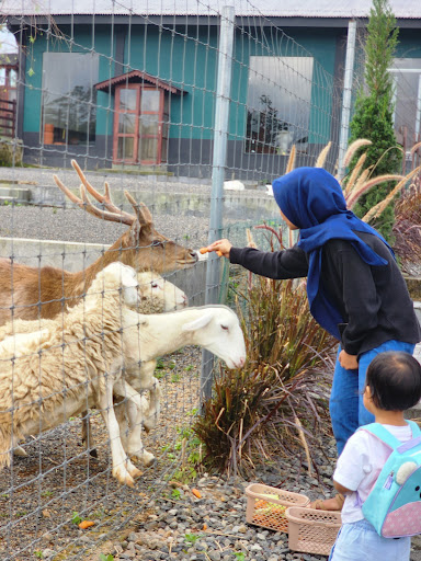Sayang sekali waktu kami berkunjung pada sore hari yang berkabut tebal dan gerimis sehingga tidak dapat melihat pemandangan gunung, namun kabut tersebut membawa suasana yang sedikit eerie tapi menarik. Sore itu juga hewan hewan sudah dikandangkan, mungkin karena cuaca yang kurang mendukung.