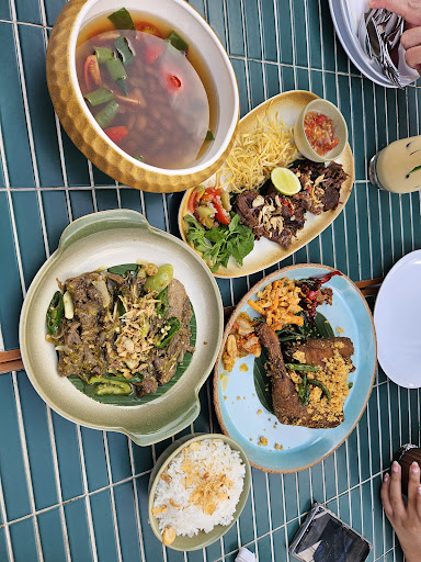 Ordered some foods and drinks. For drinks we ordered es kopi soeji very nice and sweet. Ice choc not top sweet tho. The top recommended foods were iga bakar and bebek goreng. We also ordered lidah cabe ijo. Eventho the portion not big but the tasted were not bad. They all came in the same time as the drink. Eventho it would be better when the drink came first. When the food arrived it was not that hot, probable because they waited until all food were ready. But food presentation were very nice.