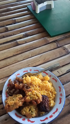 Nyari tempat makan di kota ini..buka map lah, ada beberapa rekomendasi, cek dan liat komen org dan ratingnya serta jenis masakannya.. terlihat menarik, ala2 ndeso gt... dan pst makanannya jenis makanan kampung.. and that's my fovourite 🥰 Mirip2 sama Imah Nu Bahelua di Bandung, makanan kampung dengan rasa yg mantap dan harga yang ramah di kantong. Ini pertama kali saya mencoba, menurut beberapa komen katanya menunya berganti setiap harinya. Disini ambil2 sendiri untuk makanannya, di akhir meja arah kasir..pesanan akan di catat dan kita bisa memesan minuman sekaligus dan nanti di antar ke meja kita. Bayarnya setelah makan. Ada 2 jenis nasi, nadi putih dan nasi jagung. Yang terenak ada perkedel kampungnya, terbuat dr kelapa rasa manis asin gurih. Sayur2nya juga enak, sambel terongnya pakai mangga muda dan rasanya enak. Dadar jagung juga enak. Sambelnya enak.. the best. Coba pesen es suket (bukan rumput, tp susu ketan tape) enak, es cao wangi sirup e enak cm agak manis aja, es jahe merahnya nampol 😅 di mulut pedes. Over all, ok.. bisa di baleni...