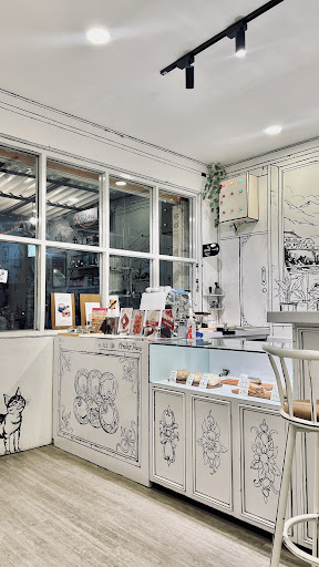 Café dengan nuansa yang unik di dekat area kampus yang cocok untuk dijadikan tempat nongkrong bersama teman kampus, rekan kerja, maupun pasangan. Interiornya unik, dengan tembok berwarna putih polos dengan coretan lukisan yang apik. Membuat kit seolah berada dalam dunia kanvas yang menunggu untuk dieksplorasi dengan warna. Untuk menunya beragam dan masih dalam jangkauan kantong, tanpa perlu merogoh kocek terlalu dalam.
