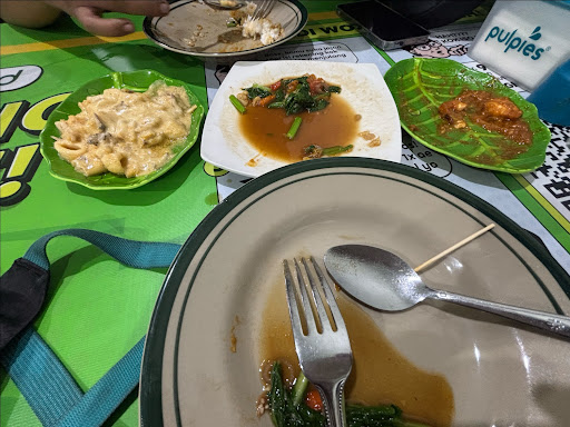 Ya untuk experience hanya ya maybe B aja. Ini overrated, gak sampai yang pengen banget makan lagi. Untuk cumi telur asin 45rb, rasanya hanya telur asin dan cumi aja... gak ada taste yang menarik seperti rempah dll just pure telur asin dan cumi serta perminyakannya tentunya. Udang asam manisnya kayaknya harganya sama, ini taste medok bumbu perbawangan cabe bukan persaosan perminyakan kayak minyak wijen saos ini itu dll kayaknya ketutup rasa dari bawangnya. Gak ada masam-masamnya, kayak bumbu merah tapi gak dikasih gula merah, kek gitulah rasanya kurang lebih. Jangan kaget kalau piringnya untuk sajikan udang/cumi itu kecil. Cah sawinya 10k matangnya pas, tapi asin banget. Pengen banget nyobain semisal ada rajungan atau lobster tapi gak ada. Untuk bumbunya disini melimpah. Pokok ini tadi nasi 1 porsi, udang 1 porsi, cumi 1 porsi, cah sawi 1 porsi, es teh 2 gelas, air mineral 1 habis 110k. Pricey atau nggaknya tergantung kantong masing-masing, tapi ya ini masik pricey untuk taste yang B aja.