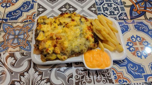 Read moreUdah lama banget penasaran dengan menu-menu yang ada di sini. Ternyata pas datang ke sini, memang banyak banget macam menu yang ditawarkan. Mulai dari pizza dengan toping yang beragam, burger, spageti, ricebowl, dan aneka minuman yang bisa kalian pesan. Kebetulan kemarin nyobain lasagna dan spagetinya. Dan rasanya enak banget, pas, ga kurang dan ga lebih. Jadi, pengen nyobain menu-menu yang lainnya kapan-kapan. Tempatnya juga bagus, estetik, cuma memang kemarin pas ke sini ac nya ga dinyalain aja. Sempat kecewa sih, karena di depan tulisannya buka sampai jam 10 malam, eh ternyata jam setengah 9 sudah diberitahu kalo tempatnya mau tutup. Parkirannya...