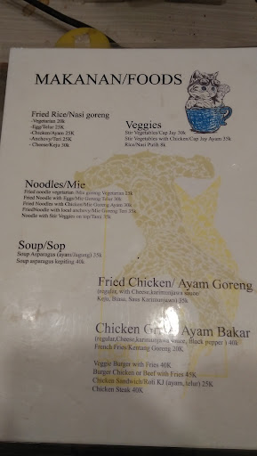 tasty! seharian capek dan bahagia jalan-jalan ya diobatinnya dengan nongkrong cantik sebelum tidur. letaknya persis depan bank BRI. satu2nya bank di Karimun Jawa. How about insomnia after drink coffee, or can't to drink coffee ? dont u worry guys, because this cafe also have another drink, like hot chocolate, greentea frappe, lemon tea, hot caramel, vanilla, redvelvet, and food too! (i post menu's photo and the price) the wifi is good (you can ask the password to barista), rest room, and AC available there. the barista is nice and helpful so you can enjoy your time there. not expensive, i order hot chocolate for 25k and taste is good. must visit when you go to Karimun Jawa, open 7.30am-22.00pm in front of Bank...