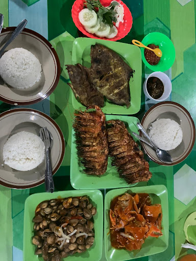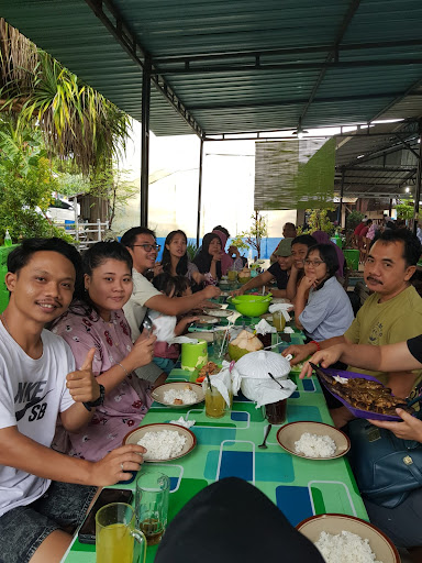 Read more(+) Masakannya cukup enak. Nyoba ikan Badong bakar, ikan Patikoli bakar, kepiting asam manis, cah kangkung. Tekstur daging ikannya lebih lembut ikan Patikoli. Kepiting asam manisnya enak juga. Cah kangkungnya agak pedas. Tempat makannya luas, bersih, cukup nyaman, banyak tempat duduk (meja kursi tinggi), ada wastafel, ada toilet, ada tempat bilas, ada mushola (disediain mukena sarung sajadah), ada ayunan untuk anak bermain. Pelayanan baik, ramah, harus nunggu makanannya agak lama karena biasanya antre banyak di jam makan siang. Pembayaran bisa cash, bisa cashless (transfer bank).