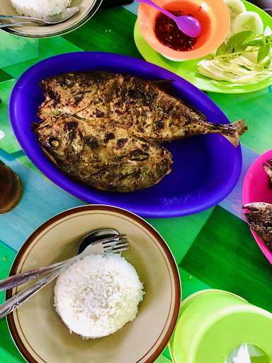 ย ย ย Read more(+) Masakannya cukup enak. Nyoba ikan Badong bakar, ikan Patikoli bakar, kepiting asam manis, cah kangkung. Tekstur daging ikannya lebih lembut ikan Patikoli. Kepiting asam manisnya enak juga. Cah kangkungnya agak pedas. Tempat makannya luas, bersih, cukup nyaman, banyak tempat duduk (meja kursi tinggi), ada wastafel, ada toilet, ada tempat bilas, ada mushola (disediain mukena sarung sajadah), ada ayunan untuk anak bermain. Pelayanan baik, ramah, harus nunggu makanannya agak lama karena biasanya antre banyak di jam makan siang. Pembayaran bisa cash, bisa cashless (transfer bank).