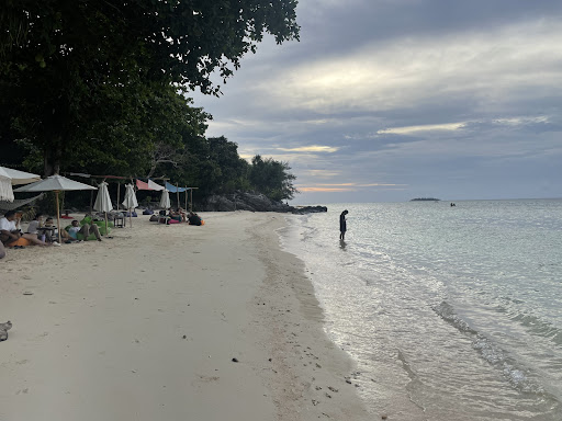 Water is fabulous and warm, beautiful views and the atmosphere feels like a luxurious vacation. Came around half past 11 and had a beach only for ourselves for quite some time. It only got packed once the sunset was slowly...