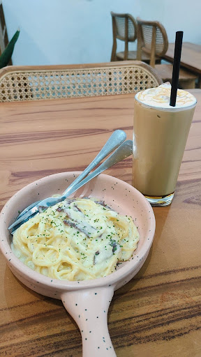 Dan Ketiga untuk Menu yaa , menu cukup variatif tapi mungkin bisa ditambahkan lagi (beberapa saja). Kebetulan aku order carbonara & ice caramel latte . untuk Carbonara nya menurut aku 6/10 karena terlalu milky dan terlalu eneg jg . Ice Caramel latte nya 7.5/10 karena rasa caramelnya kalah sama...