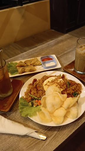 Read moreCafe di pusat kota. Dekat dengan Kebon rojo yaitu sebelah selatan nya pas. Parkir luas, tempat nya ada indoor dan outdoor. Untuk suasana cafe cozy dan nyaman, biasanya ada live music jadi nongkrong makin asik. Menu yg ditawarkan beragam cuma dari aku pribadi untuk taste nasi goreng kurang suka (karna nasi nya ngumpul gitu hehe, kan biasanya nasgor yg nasinya misah2 lebih afdol). Untuk minuman nya enak-enak. Untuk snack lumayan si. Harga nya standar ke mahal untuk rasa yg biasa. Tp minuman nya beneran seger enak. dan pelayanan lumayan lama (karna saya udah reservasi tp yg dapat makanan dulu yg pesan ditempat/OTS. Sarannya mungkin bisa didahulukan sesuai pesanan kak, kasian udah jam berbuka tp makanan dan minuman belum datang, takjil juga tidak ada sehingga nunggu makanan datang baru bisa dibatalkan puasanya....