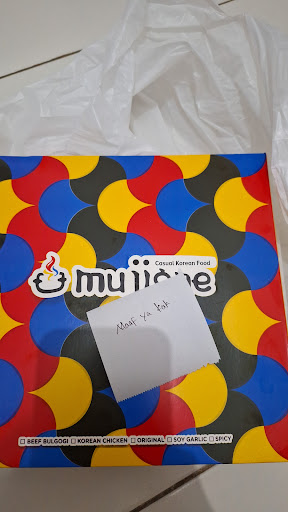 Mujigae Korean Delivery, Layanan Ramah, cepat, bersih. Yang perlu diingat pembayaran tidak menggunakan uang tunai alias cashless, saya sendiri biasa menggunakan QRIS di Gojek. Pilihan menu macam2 yang paketan nasi, japche, kimchi, mandu, ayam/daging dengan bumbu bulgogi mau pedas atau original juga bisa, tersedia juga pake nasi goreng kimchi, paket japche (mie Korea), paket Suki (fresh/panasin sendiri) yang Suki yang sudah dipanaskan oleh toko, ay am goreng khas Korea juga ada, packaging rapih dan bersih. Bisa pilih alat makan atau tidak. Terdapat juga berbagai pilihan minuman teh, smoothies. Buat yang suka hidangan Korea casual recommended buat cobain mujigae...Saran aja tempat duduknya ditambah, soalnya hanya tersedia 2 bangku depan restorannya....
