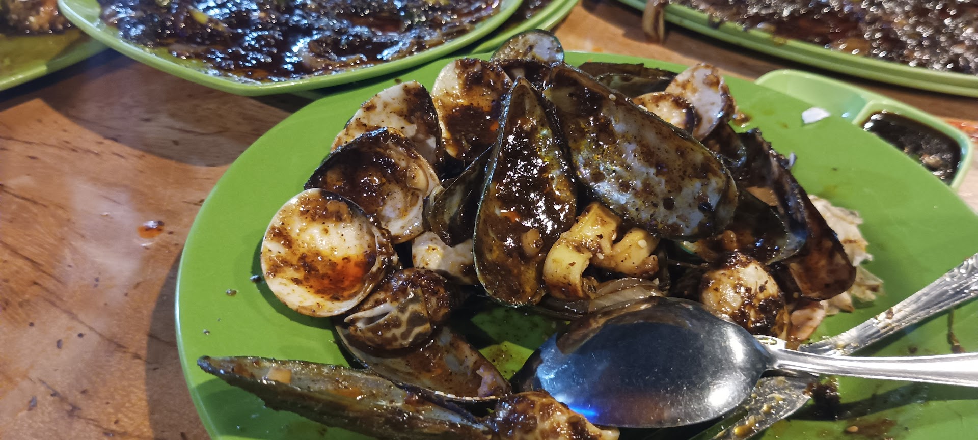 Semuanya berpadu dalam kuah asam pedas manis yang kental, menciptakan citarasa yang membuat kita tidak bisa berhenti untuk terus menyantapnya. Dan, dari sekian banyak yang disajikan, saya sangat menikmati kerang Hijau dan kerang darah, karena tekstur lembut dagingnya berpadu sempurna dengan kuah asam pedas manis.